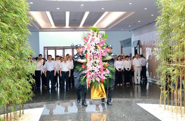 上午九時(shí)許,在陳麟輝館長(zhǎng)的陪同下,全體與會(huì)同志緩步來(lái)到展廳中央,向陳云塑像敬獻(xiàn)花籃,表達(dá)對(duì)陳云同志的無(wú)限緬懷和崇敬之情。