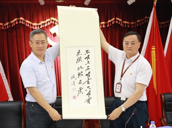 會(huì)上,陳館長(zhǎng)向中智公司贈(zèng)送陳云同志的 “不唯上、不唯書、只唯實(shí),交換、比較、反復(fù)”15字訣的親筆手跡卷軸。